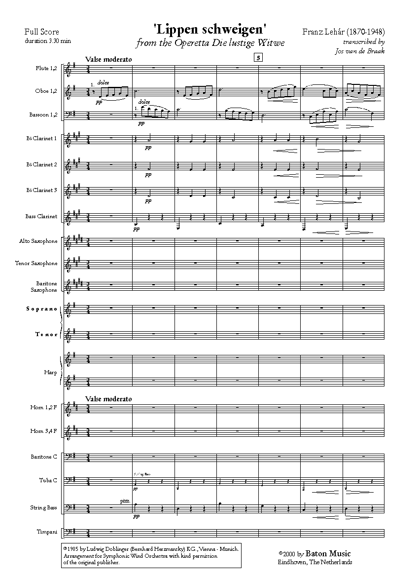 Lippen schweigen (from the Operetta 'Die Lustige Witwe') - hier klicken Lippen schweigen (from the Operetta 'Die Lustige Witwe') (Blasorchester; Vokal-Solist(en)), Partitur und Stimmen