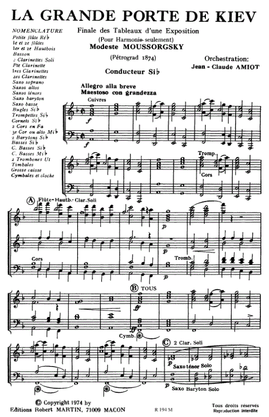 La Grande porte de Kiev (extrait des Tableaux d'une exposition) - hier klicken La Grande porte de Kiev (extrait des Tableaux d'une exposition) (Blasorchester), Particell/Direktionsstimme