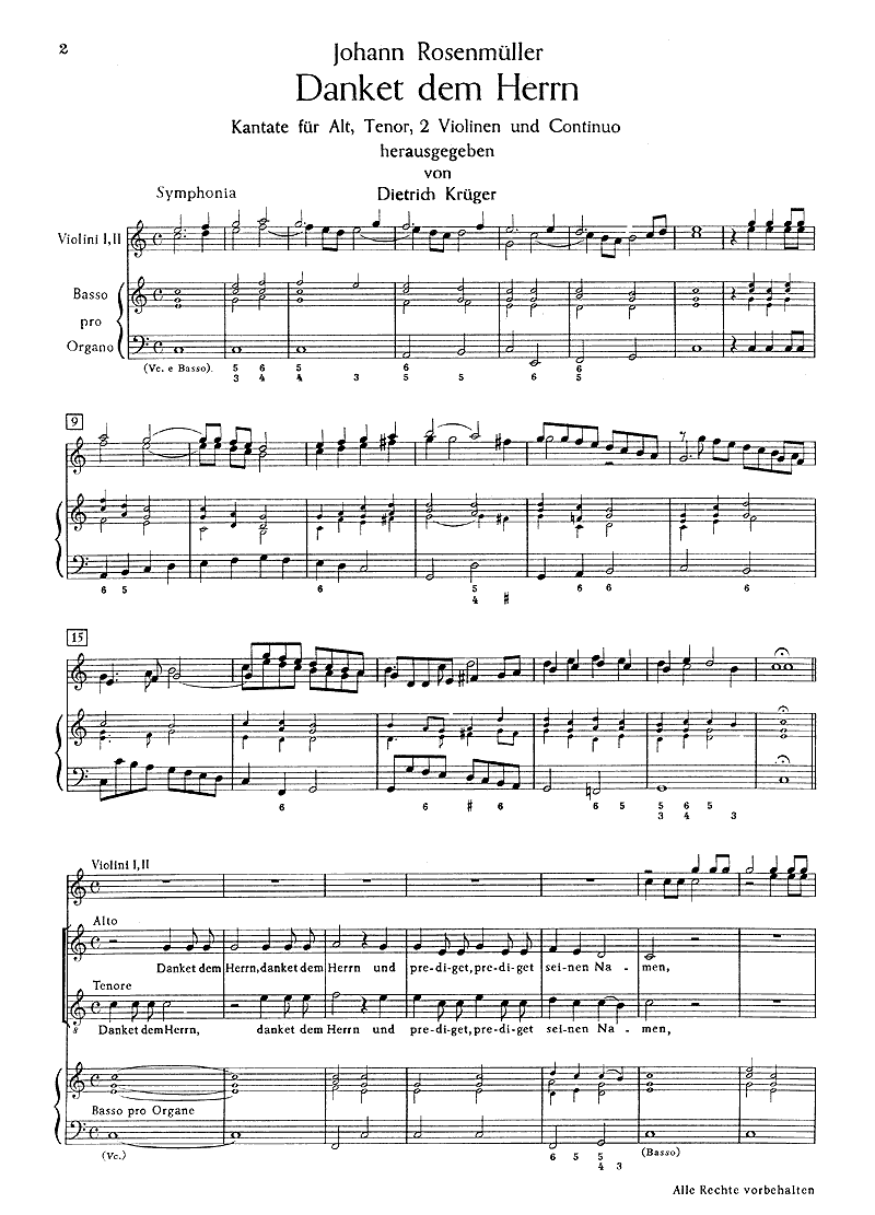 Danket dem Herrn und prediget (CoroAT; 2 Violinen; Generalbass), Partitur