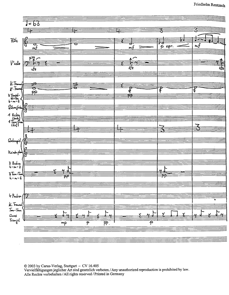 Komposition für Flöte, Violoncello und Schlagzeug - hier klicken Komposition für Flöte, Violoncello und Schlagzeug (Flöte; Vcl; Schlaginstrument; (; 3 Spieler; ); ), Partitur