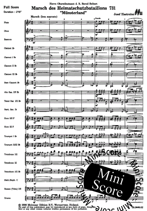Münsterland (Marsch des Heimschutzbataillon 731) - hier klicken Münsterland (Marsch des Heimschutzbataillon 731) (Blasorchester), Partitur