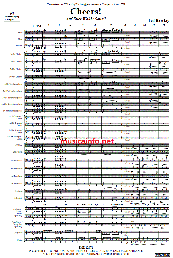 Cheers (Auf Euer Wohl / Santé) - hier klicken Cheers (Auf Euer Wohl / Santé) (Blasorchester; oder; Fanfarenorchester), Partitur