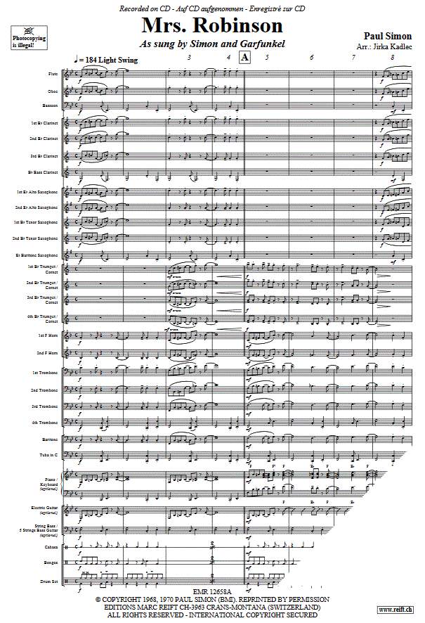 Mrs. Robinson - hier klicken Mrs. Robinson (Blasorchester), Partitur