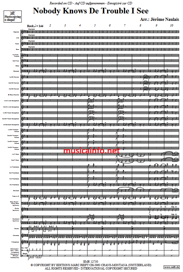Nobody Knows De Trouble I See - hier klicken Nobody Knows De Trouble I See (Blasorchester; oder; Fanfarenorchester; Chor SATB), Partitur und Stimmen