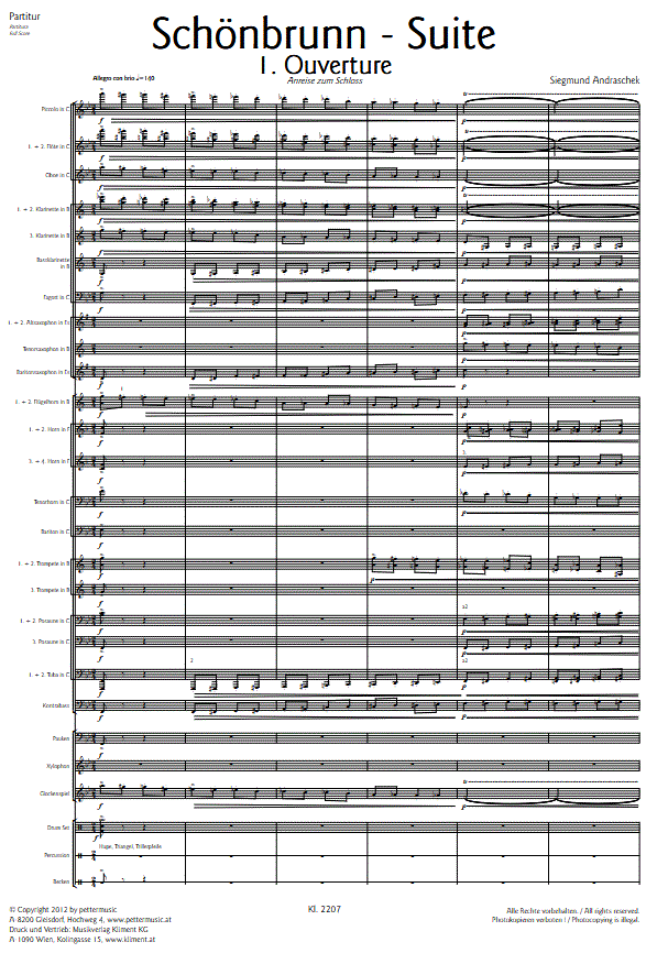 Schönbrunn Suite - 1. Ouverture: (Anreise zum Schloss) - hier klicken Schönbrunn Suite - 1. Ouverture: (Anreise zum Schloss) (Blasorchester), Partitur und Stimmen