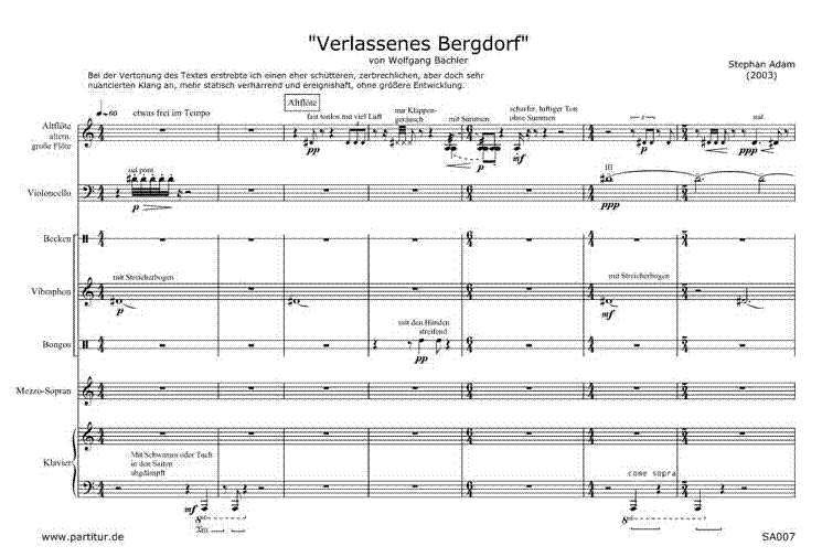 Besetzungsart/Infos VoSoMez (Mezzosopran Solo); Flt (Flöte); Perc (Schlaginstrument); Pno (Klavier); Vlc (Violoncello)