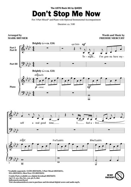 Die klassischen Rock-Harmonien, die eine Signatur von Queen's Sound sind, passen perfekt zu diesem dynamischen Chor-Arrangement. Dieses Arrangement machen das Stück zu einem großen Opener zu jedem Pop-Konzert.