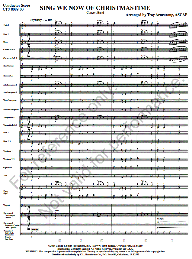 Zusatzinfo/Inhalt Suchen Sie nach einem neuen Weihnachtsmedley, um Ihr Weihnachtskonzert aufzupeppen? Dann ist „Sing We Now of Christmastime“ genau das Richtige für Sie. Troy Armstrong hat ein halbes Dutzend berühmter Weihnachtslieder gesammelt und sie gekonnt zwischen einer festlichen, originellen Melodie eingefügt, die das Werk eröffnet und beendet. Geben Sie allen Ihren Abschnitten etwas, das Spaß macht, und Ihrem Publikum etwas, bei dem es mitsingen kann!
