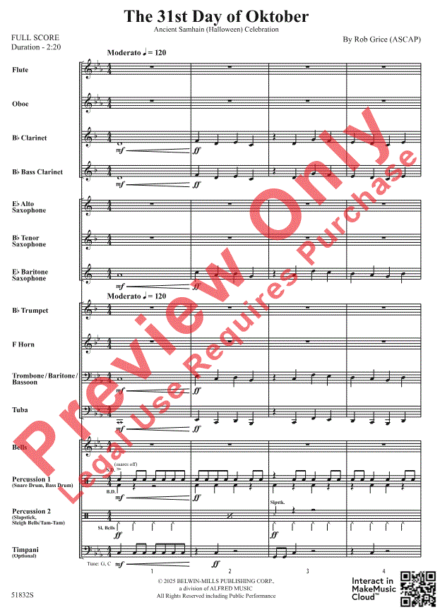 Halloween entstand vor 2000 Jahren mit dem alten keltischen Fest Samhain (Sow-in), bei dem die Menschen Lagerfeuer entzündeten und Kostüme trugen, um Geister abzuwehren. Diese fantasievolle und gruselige Auswahl wurde geschrieben, um das Beste aus jungen Musikschülern herauszuholen und das Publikum mit ihrem reifen Klang zu beeindrucken. Ein garantierter Hit für Ihr Herbstkonzert.