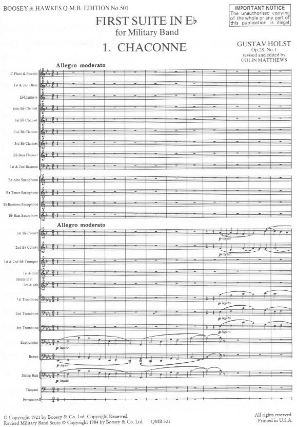 First Suite in Eb For Military Band (1909) - hier klicken First Suite in Eb For Military Band (1909) (Blasorchester), Partitur und Stimmen