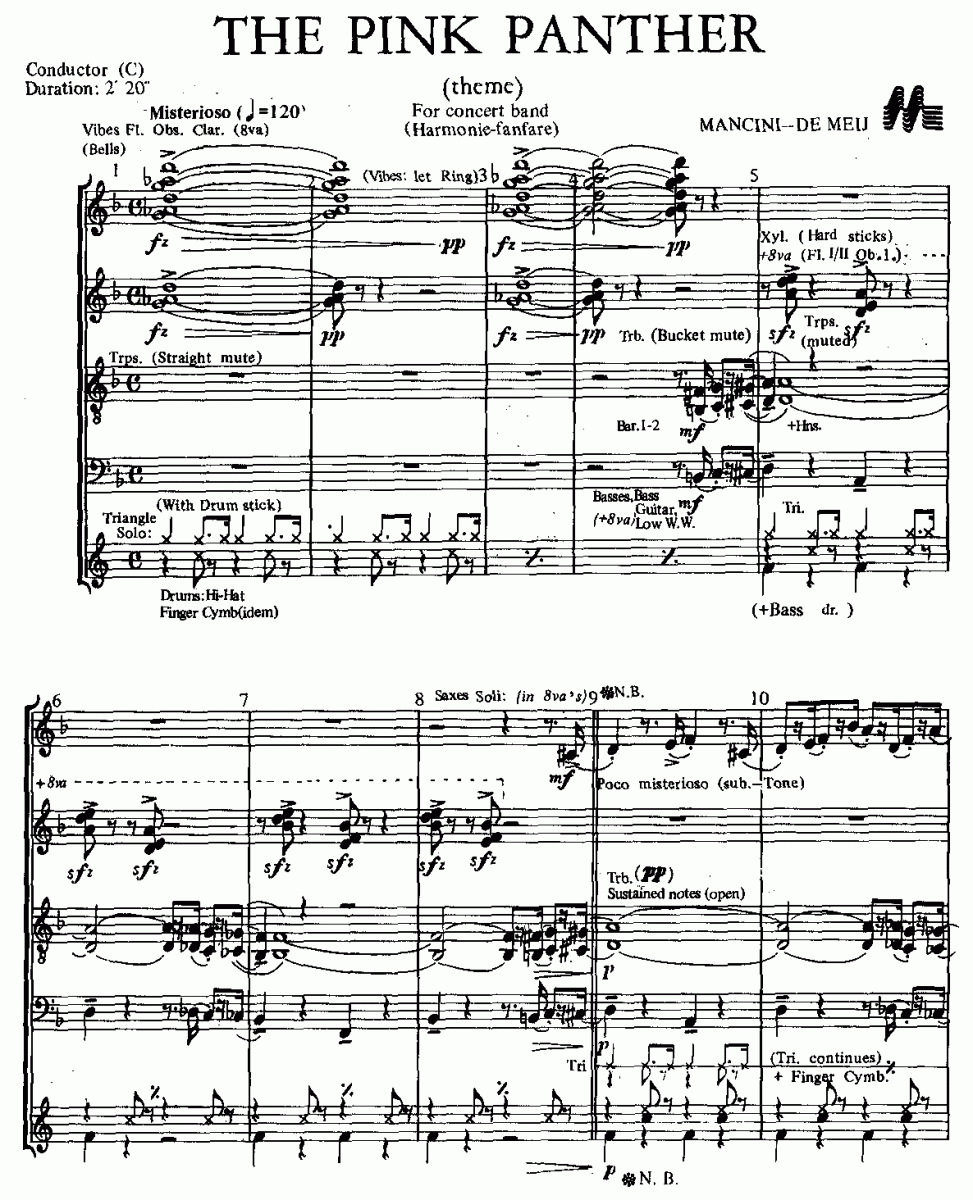 Pink Panther Theme, The - hier klicken Pink Panther Theme, The (Blasorchester), Particell/Direktionsstimme
